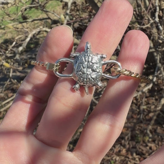 Coast Walker - Fine Silver Turtle Brass Bracelet - Handmade Artisan Jewelry